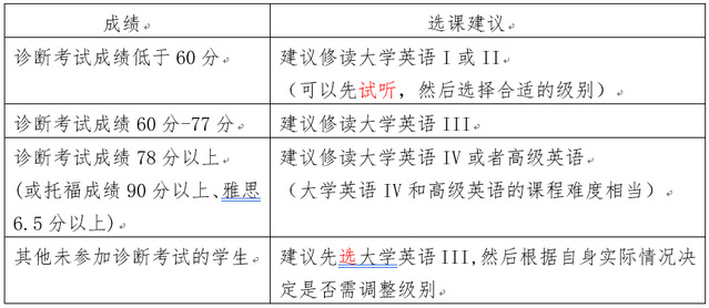 为了帮助大家从合适的起点修读大学英语课程,现就大学英语分级诊断考试的结果作如下说明: