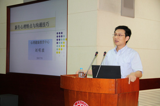随后,心理健康教育中心刘明波老师向与会导师介绍了大学生心理健康教育的工作方法与经验。他向各位导师分享了自我伤害、暴力伤人这两类高频心理问题的识别判断方法以及导师干预的步骤和方法,以帮助导师更加有的放矢地关注新生心理动态。
