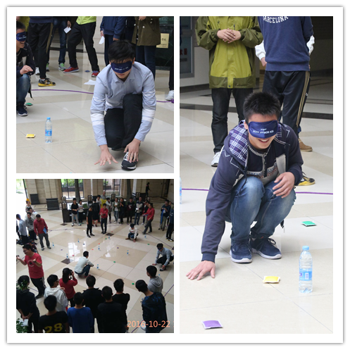 项目要求团队成员在规定的时间进行角色分配(司令官,指挥官,士兵)后,蒙上双眼依次进入模拟战场,在躲避地雷的同时用炮弹尽可能的击中对手,最终战场剩余人数最多的小组获胜。最终腾飞书院火焰队以最好成绩赢得该项目的第一名。