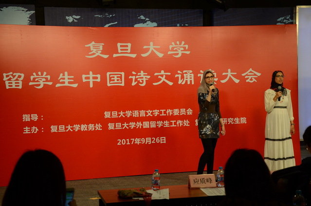 本次活动同时作为上海市2017年留学生中国诗文诵读大会的校内选拔赛,将推荐活动中表现突出的优秀作品参加上海市级比赛。本次活动由校语言文字工作委员会指导,由校教务处、外国留学生工作处、研究生院共同主办,许国萍、徐婷婷、徐民杰、潘佳等校内外专家担任评委,校内各相关部门的同志出席了活动并宣读获奖学生名单。活动还邀请了杨浦区语委办现场观摩。