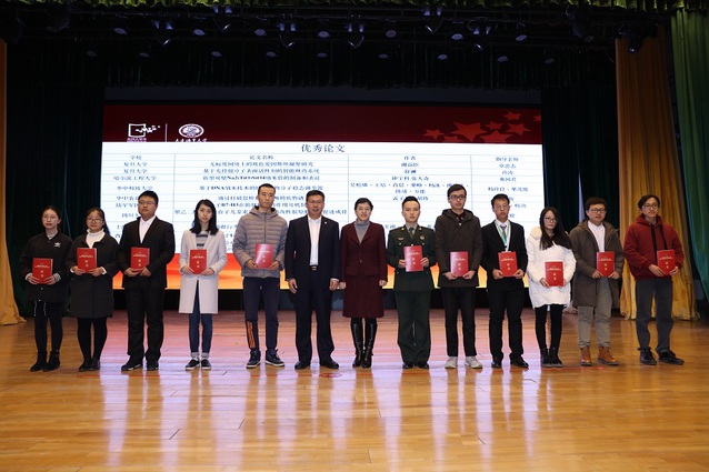 图2:舒澜(右2)和谢品臣(右1)领取“优秀论文奖”