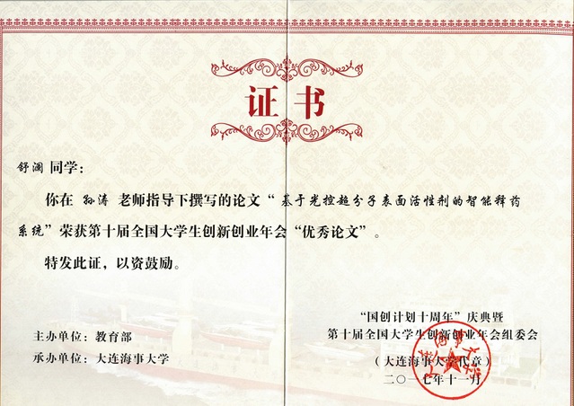2006年,我校作为首批10所试点学校之一参加国家级大学生创新创业训练计划,至今共有1478个项目获得立项。自2008年教育部举办首届大学生创新创业年会以来,我校几乎每年都有项目入选,并多次获得优秀论文奖,今年成绩尤为喜人。药学院2013级本科生舒澜(指导教师为药学院孙涛老师)和物理学系2014级本科生谢品臣(指导教师为计算机科学技术学院章忠志老师)的论文从教育部直属高校和地方教育主管部门推荐的461篇学术论文中脱颖而出,参加年会论文交流,并最终都获得“优秀论文奖”(共21篇),舒澜还作为两位学生代表之一,在闭幕式上作了大会报告。这是继去年信息学院2012级本科生彭博在国创年会上作大会报告之后,复旦学子再次在全国舞台上展示我校本科生学术研究资助计划(FDUROP)的培养成果。