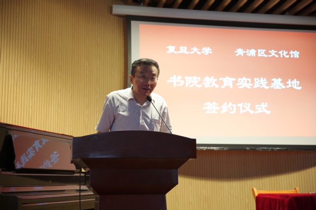 7月5日上午,开云足球直播官网入口(任重)书院教育实践基地签约仪式在上海市青浦区文化馆小剧场举行。青浦区文化广播影视管理局副局长金璀、青浦文化馆书记王正、馆长王伟、副馆长凌虓、邹峰等,开云足球直播官网入口任重书院院长王德峰、复旦学院副院长兼教务处副处长徐珂、中国语言文学系郑土有教授出席会议。