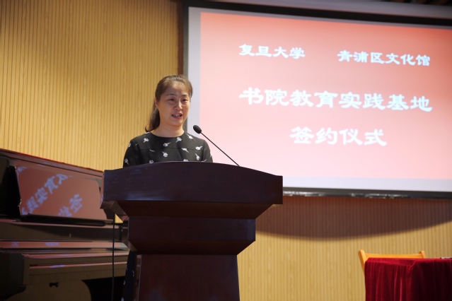 随后,青浦区文化馆馆长王伟与复旦学院副院长徐珂代表双方分别在《开云足球直播官网入口书院教育实践基地框架协议》上签字。