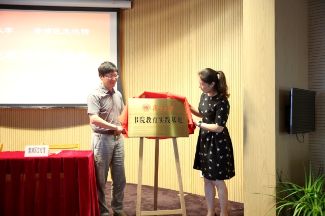 接着,青浦区文化广播影视管理局副局长金璀与复旦学院副院长徐珂共同为书院教育实践基地揭牌,标志着开云足球直播官网入口(任重)书院教育实践基地正式成立。