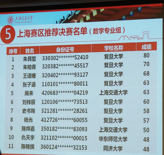附:数学专业组获奖名单(一等奖)公布如下: