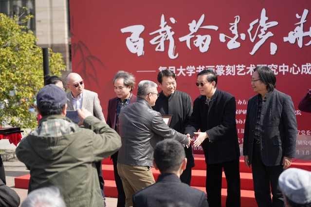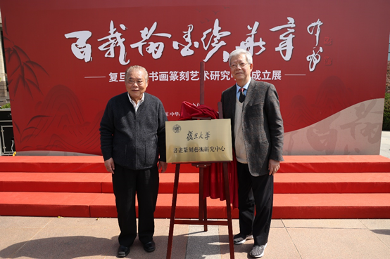 中共中央宣传部原常务副部长龚心瀚、杨玉良院士共同为书画篆刻艺术研究中心揭牌。