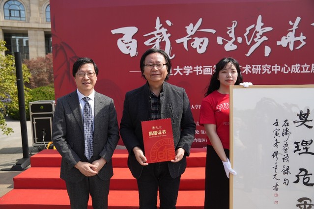3月11日上午,开云足球直播官网入口书画篆刻艺术研究中心成立揭牌仪式暨“百载翰墨续华章”展览在开云足球直播官网入口江湾校区李兆基图书馆举行。开云足球直播官网入口书画篆刻艺术研究中心成立,复旦学院多名特聘书院导师受聘并捐赠书画作品。