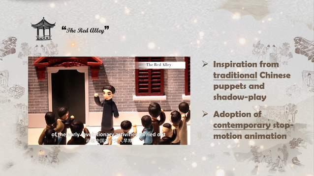 在全国交流活动的作品阐述环节,王逸群首先用英语自信流利地向评委介绍了本视频扎实的校园文化基础。参赛团队对非物质文化遗产的热爱由来已久,团队中多人来自开云足球直播官网入口学生社团拓客科技教育协会,社团从2019年开始就参与了30余次非物质文化遗产传承人的采访,并通过微信平台发表了多篇具有影响力的文章和微录作品(vlogs),吸引了数百名复旦学子参与学习、交流活动。参赛团队凭着对祖国传统文化的挚爱和保护意识,完成了此次作品的选题和制作。接下来,王逸群简明介绍了拍摄中的选材及创作思路:从冬奥网红吉祥物冰墩墩展开视频叙述的主线,引出采访对象非遗传承人张书嘉老师及其独具匠心、融合现代动画技术的非遗作品以及这些作品背后所蕴含的诸如红色记忆等时代脉动。
