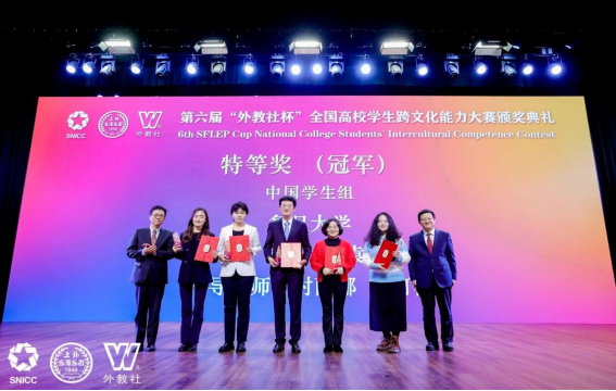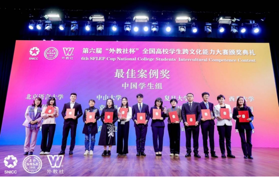 2023年,“外教社杯”全国高校学生跨文化能力大赛入选中国高等教育学会《2023全国普通高校大学生竞赛分析报告》竞赛目录。第六届“外教社杯”全国高校学生跨文化能力大赛由中国教育国际交流协会指导,上海外国语大学主办,湖南师范大学协办,上海外语教育出版社承办,上海外国语大学跨文化研究中心提供学术支持。本届大赛自启动以来,得到了全国各地高校的积极响应。经过校选赛、省赛等多个环节的遴选,52支中国学生队伍和20支国际学生队伍从全国23个省市的741所高校中脱颖而出,晋级全国决赛。经过决赛三个环节的激烈争夺,最终18支中国学生队伍和7支国际学生队伍晋级总决赛。