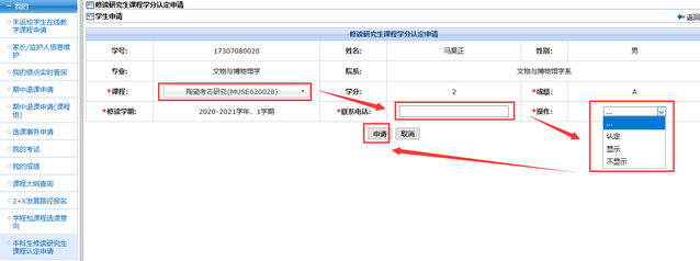 菜单位置:我的--本科生修读研究生课程认定申请