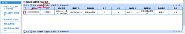 第二步:选择需要认定的课程 -> 填写联系电话 -> 在操作栏选择认定方式
